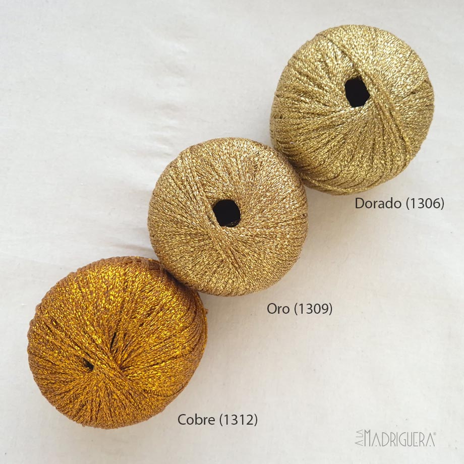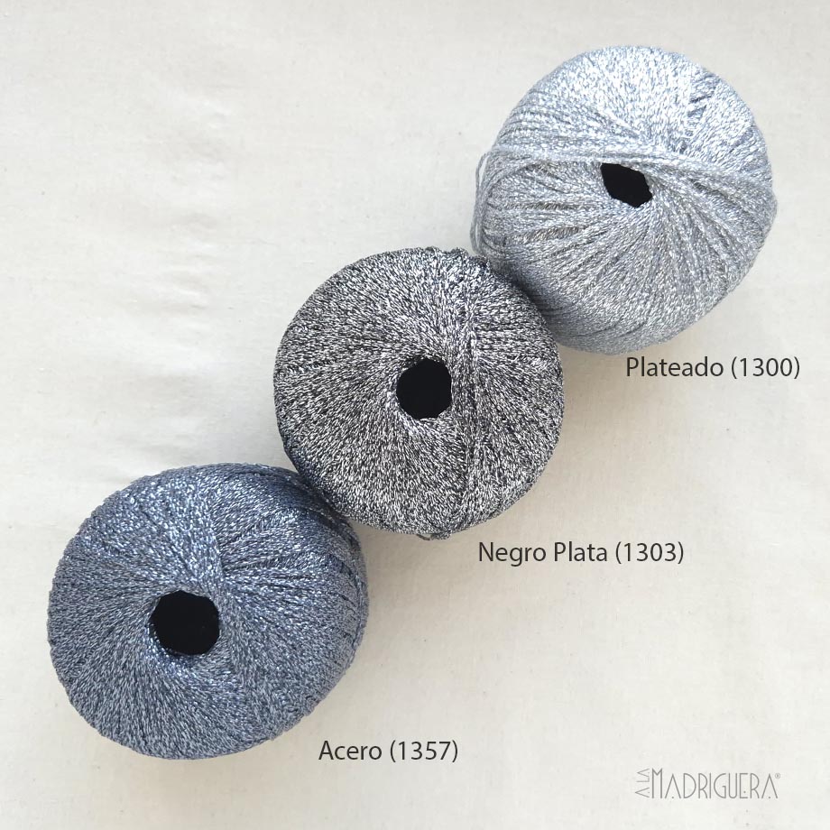 Está compuesto por una hebra metalizada finamente trenzada, que da como resultado un hilado de grosor medio, con una torción particular que no solo potencia el brillo al ofrecer más superficies donde la luz rebota, sino que también aporta mayor estabilidad a tus tejidos.