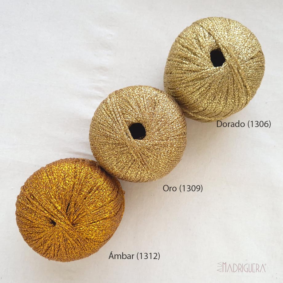 La luz y los destellos que posee este hilado lo hacen destacar de inmediato. Está compuesto por una hebra metalizada finamente trenzada, que da como resultado un hilado de grosor medio, con una torción particular que no solo potencia el brillo al ofrecer más superficies donde la luz rebota, sino que también aporta mayor estabilidad a tus tejidos.