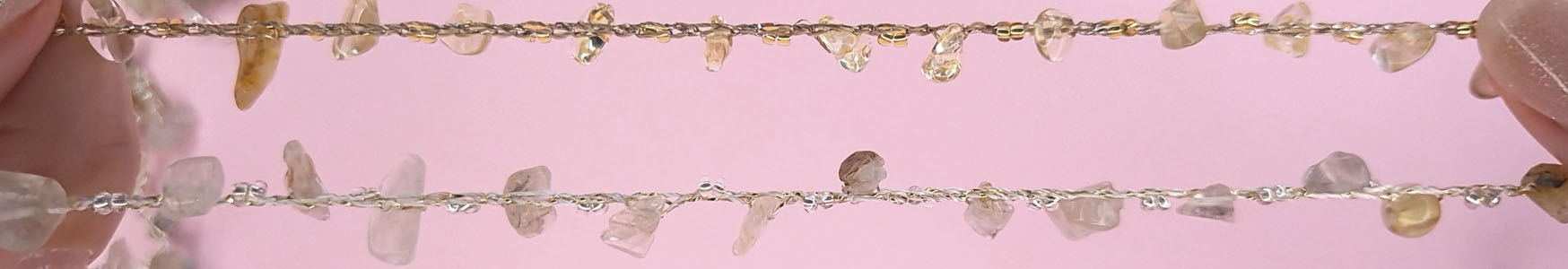 TIP: Dejamos cadenetas de separación entre cada piedra o mostacilla para darle mayor flexibilidad al collar.